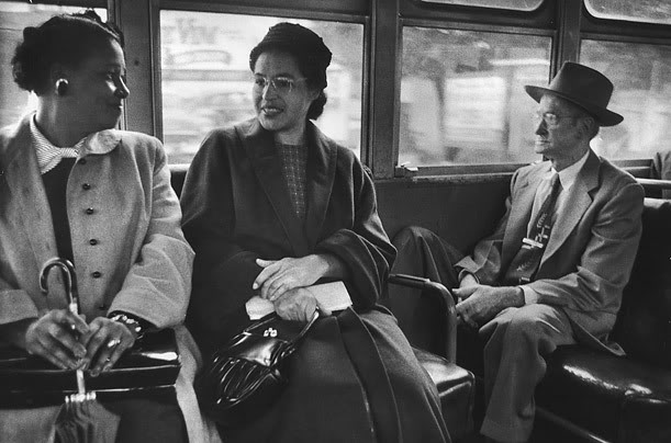 (Entre as fotos esta uma com o filho na cadeis, ele detido, e a conquista de brancos e negros andarem no mesmo onibus.)